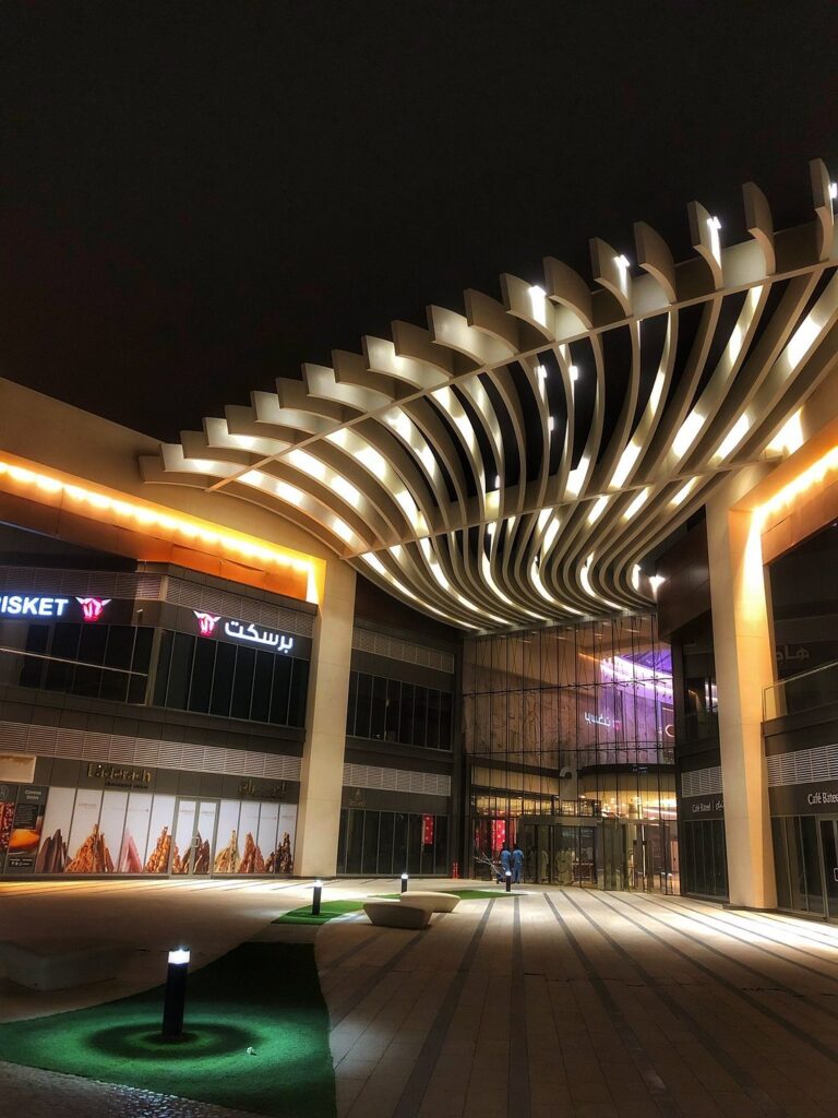 It consists of 3 main floors with over 300 stores, about 70 restaurants and cafés, plus 5 cinema halls including one for kids.
